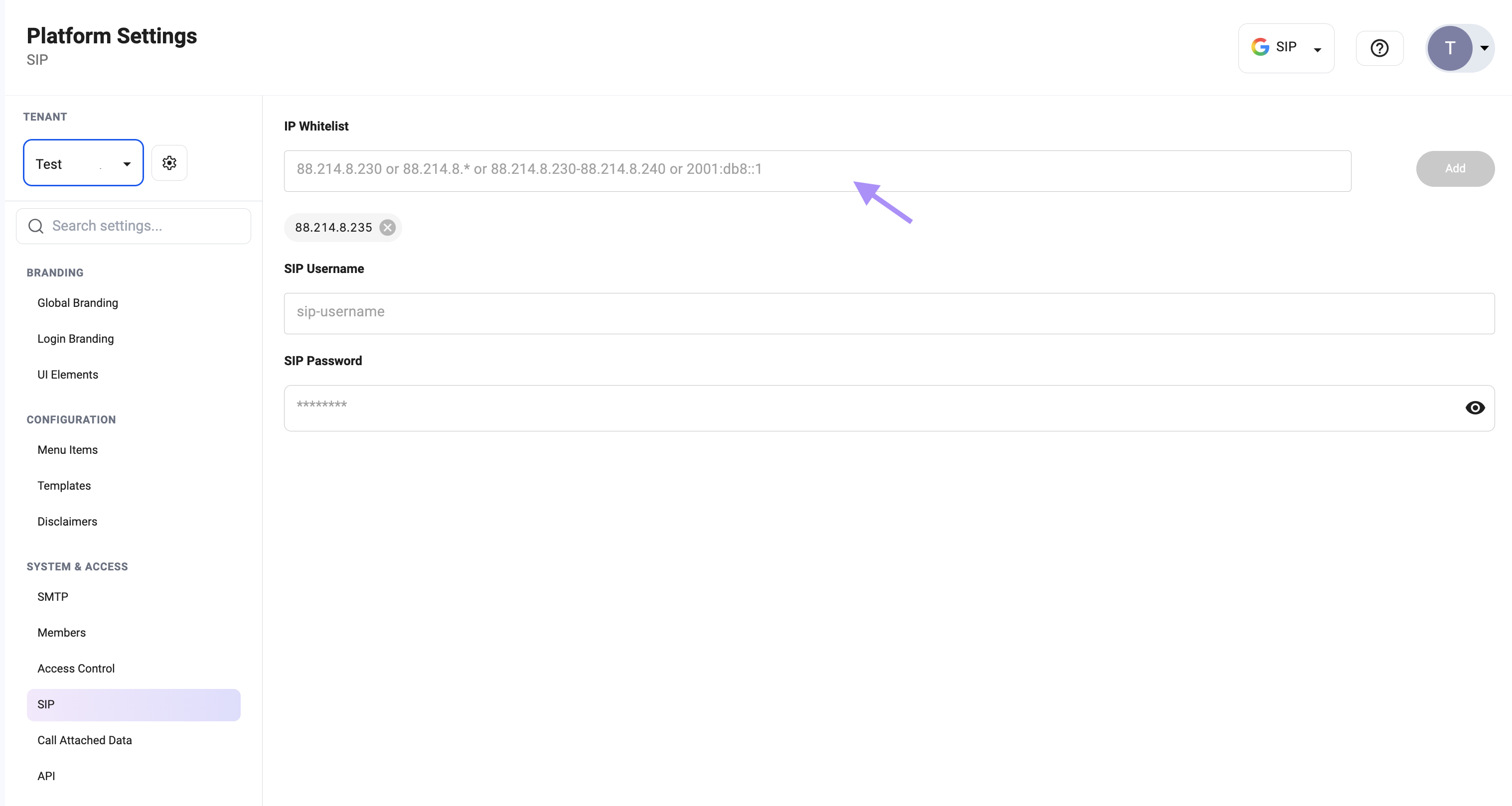 IP Whitelisting is a security feature that controls which IP addresses are allowed to access your SIP endpoint.This feature is available for Enterprise plans only.