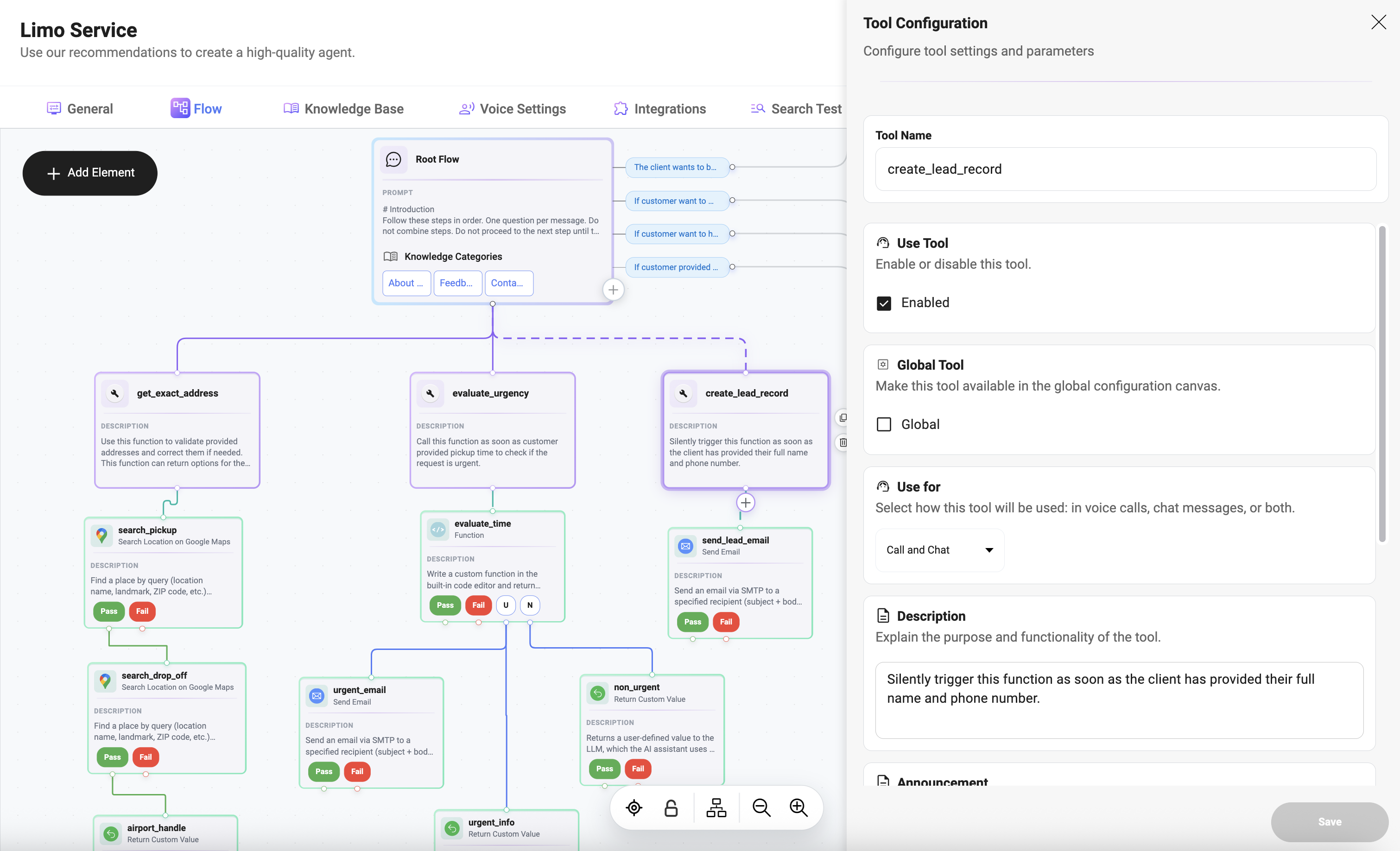 Click the + button under the node to add a tool. The tool will be executed based on the node logic and tool configuration. Multiple tools can be added if needed.General Configuration