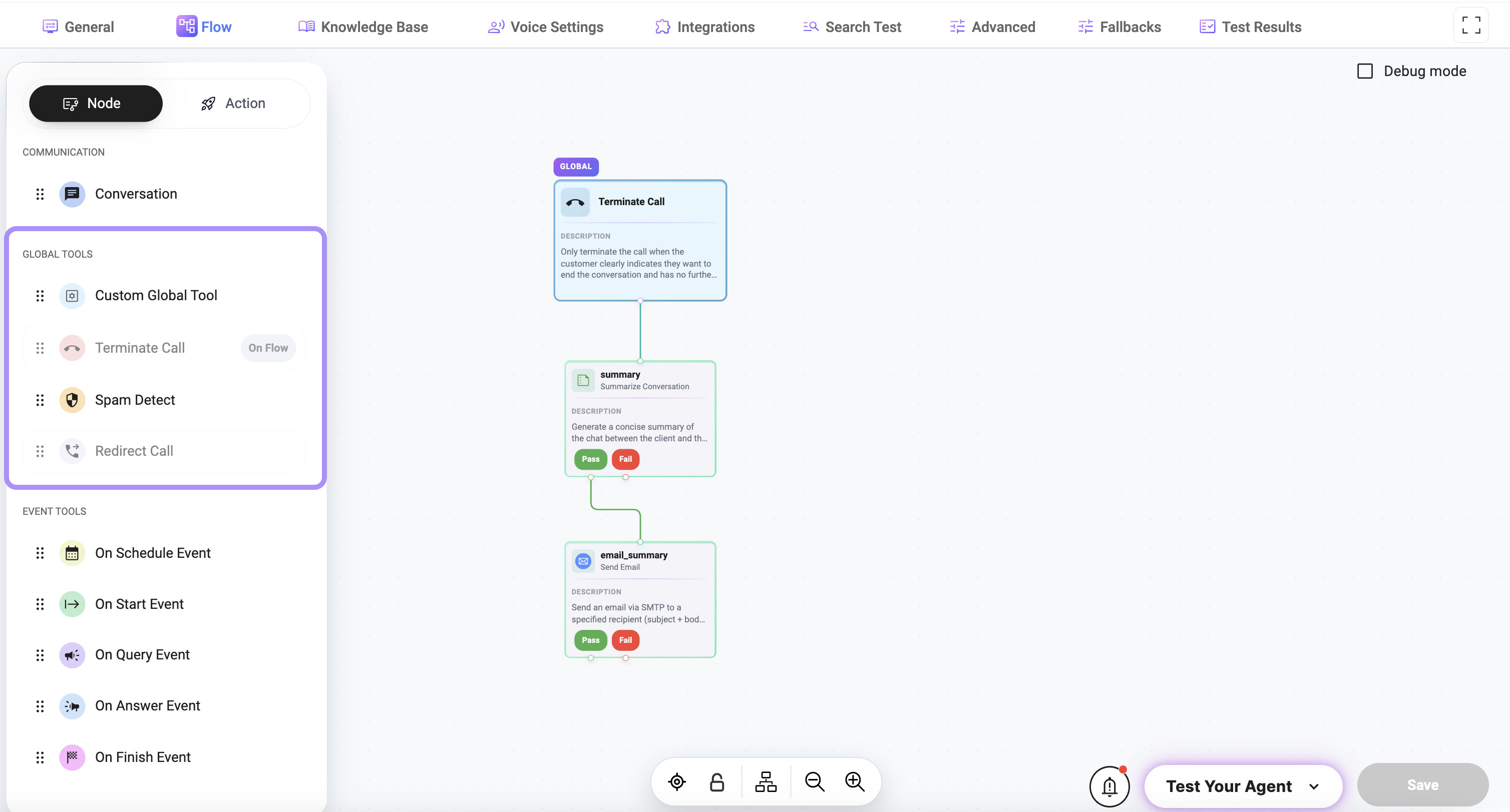 A reusable custom tool that can be configured and applied across multiple flows.Terminate Call